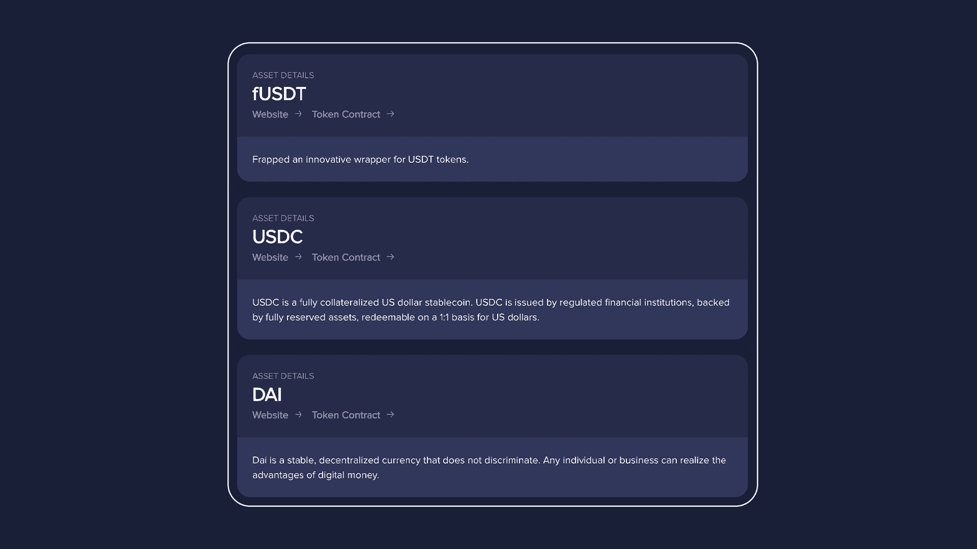 Here you’ll see a brief description of all the assets involved in this particular vault. The description also includes links to the token’s website plus its contract address.