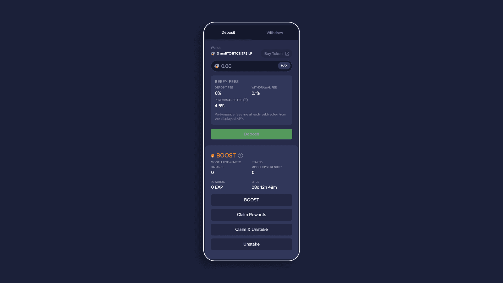 Beefy v2 is all about streamlining, and boosts are part of that too. You can now boost your vault deposits and claim your bonus rewards without ever leaving the vault page.