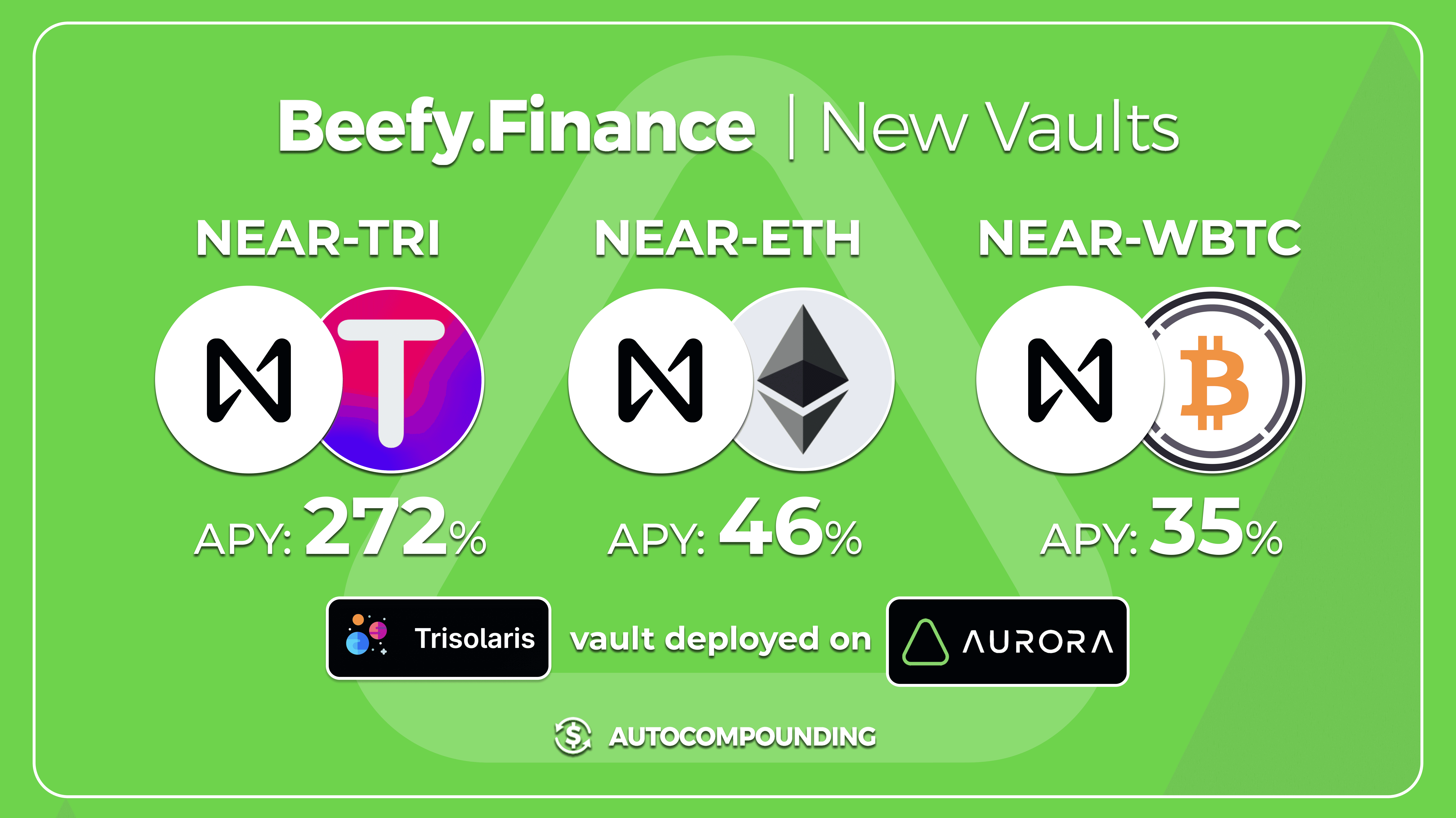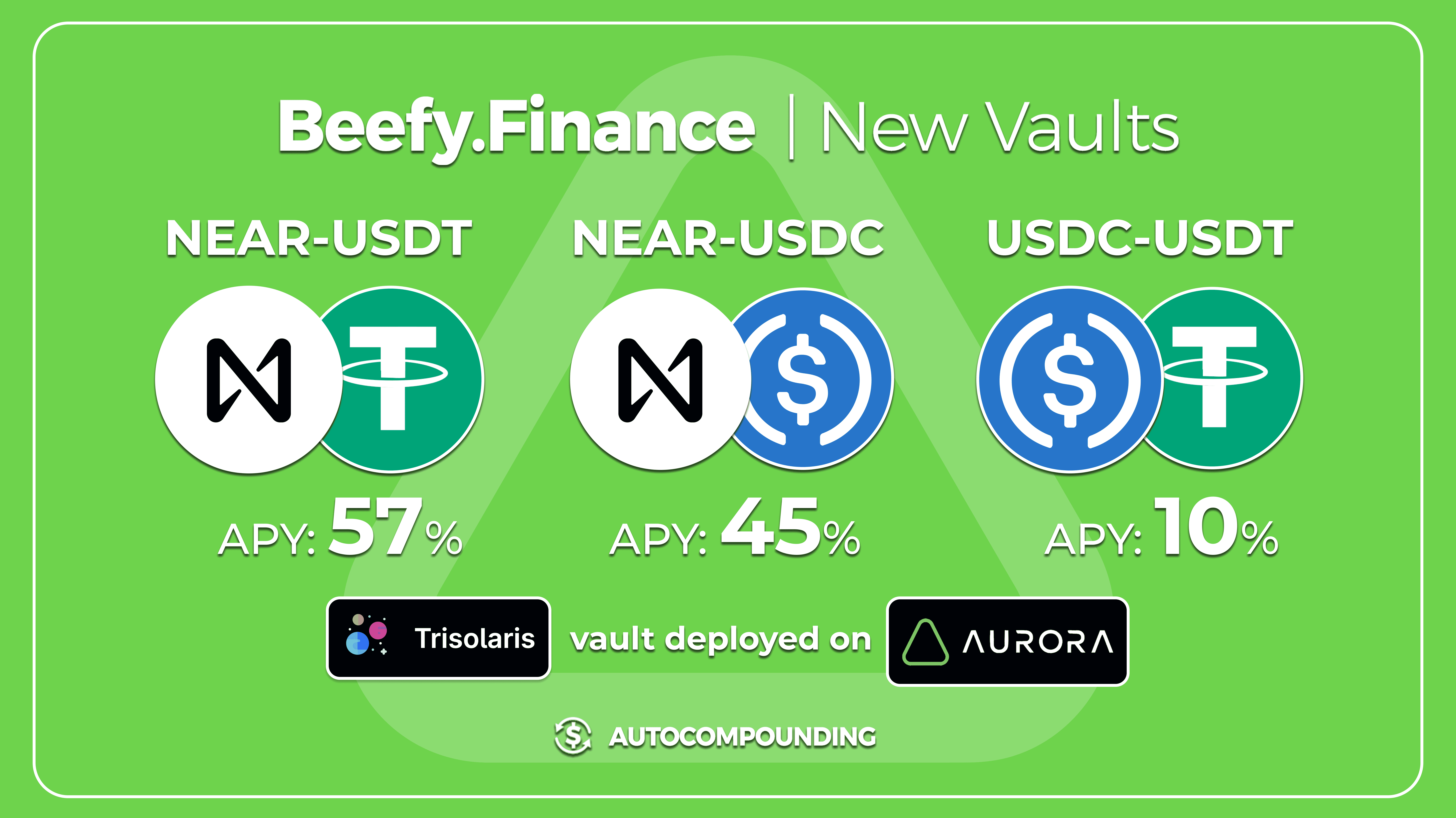 We just deployed with Trisolaris vaults, this means that you can start earning compounded interests on your Trisolaris deposits, with the level of safety only Beefy can give you. If you want your favorite Aurora project on Beefy head over to our Discord and let us know which one it is.