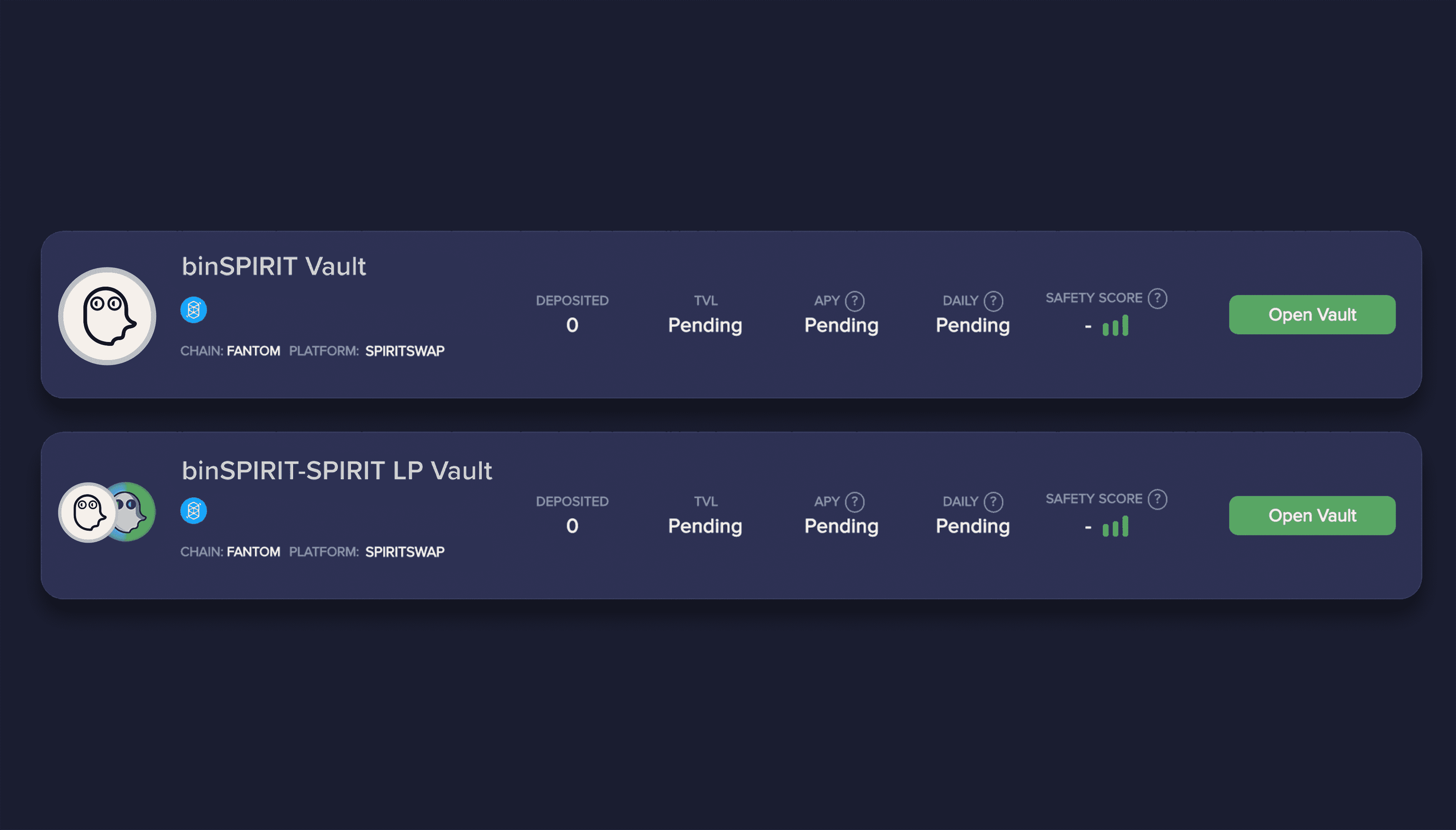 They can stake binSPIRIT in a single asset Vault, with rewards coming from SpiritSwap protocol fees.