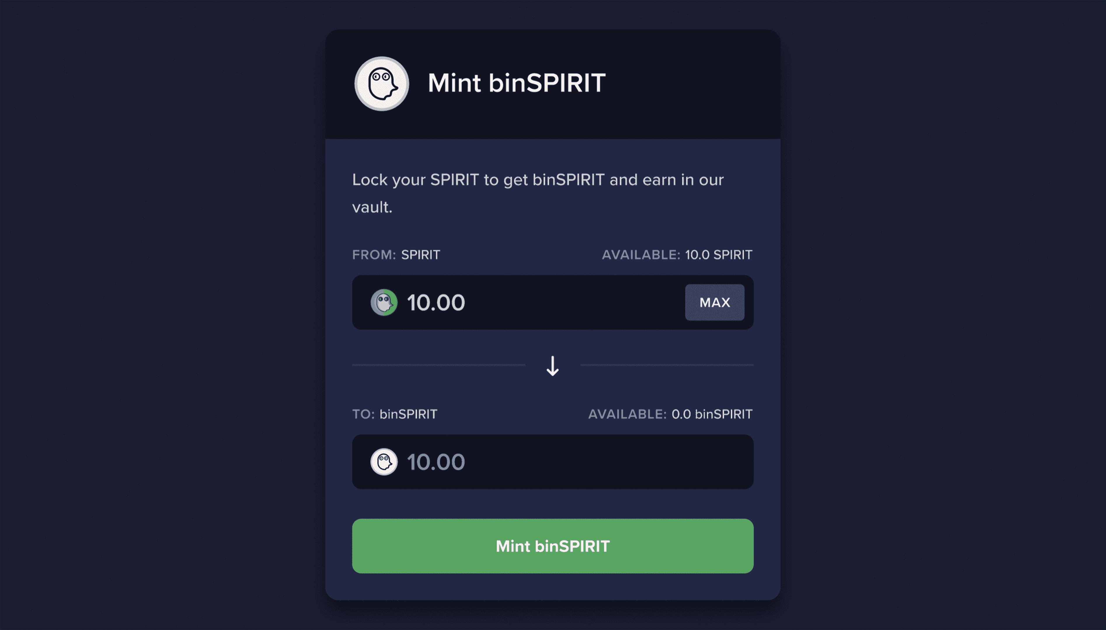 Beefy users can get binSPIRIT by either minting it with SPIRIT tokens at a 1:1 ratio or purchasing it on SpiritSwap. binSPIRIT holders then have two options: